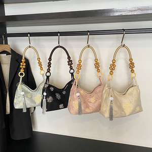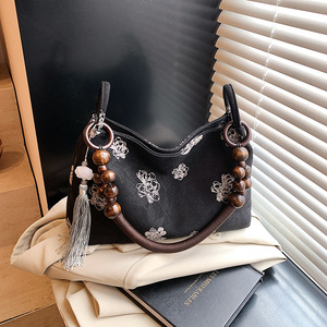 新しい中国風の花の女性のためのハンドバッグ 2025 新しいトレンディなファッション刺繍脇の下バッグシングルショルダー通勤大容量バッグ