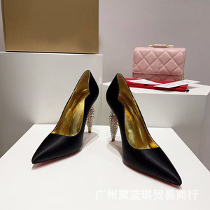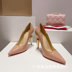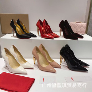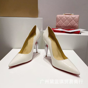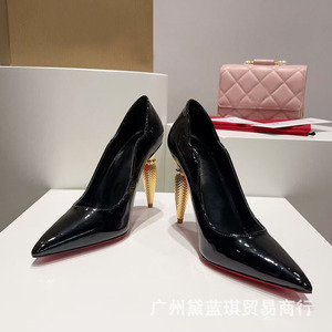 ヨーロッパとアメリカの2025年夏の新スタイル牛パテントレザー波型セプタースーパーハイヒールポインテッドトゥファッショナブルな女性用ファッションシューズ