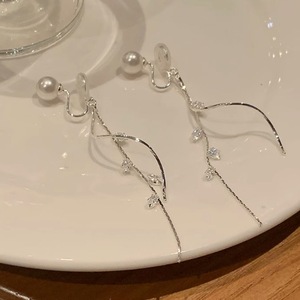 韓国風ジルコニアの葉っぱパールフリンジイヤリング、女性用、軽やかな高級感、イヤリング、耳飾り、ノンホールイヤリング、絶妙なデザイン