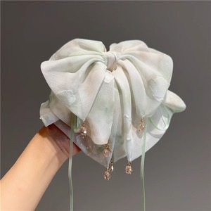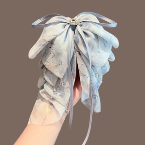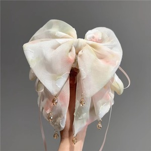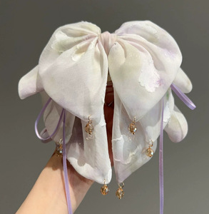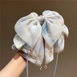 新しい中国風のスプラッシュインクプリントメッシュリボンポニーテールクリップ、甘いプリンセスの雰囲気、軽い豪華な気質のクリップ