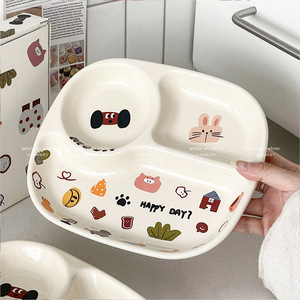 211分割プレート、1人用セラミック定量分割プレート、子供用朝食プレート、可愛くて見栄えの良い分割プレート