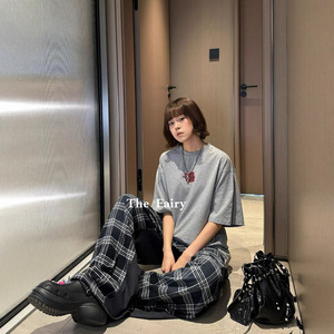 25SS Nanyou 高品質小型バスステッチ両面チェック柄パンツ、ゆったりとファッショナブル、男女兼用、スポーツ夏の必需品