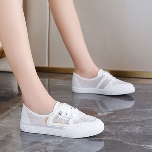 シングルメッシュフラットレディースシューズ 2025 新しい通気性イン多用途メッシュ夏超軽量薄型靴白靴トレンディな靴