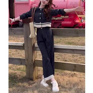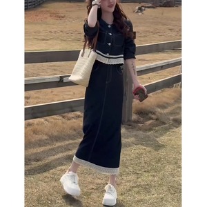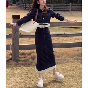 春のファッショナブルなスタイルの女性の韓国風カジュアル多用途デニムジャケットデニムスカートとジーンズのツーピーススーツ