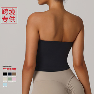 ヨーロッパとアメリカのクロスボーダーAmazon限定の胸パッド付きチューブトップスポーツブラ、速乾性、通気性、ヨガウェアとして着用可能