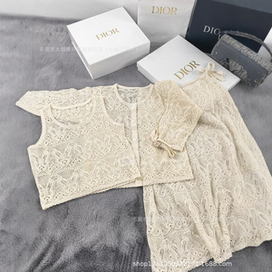 Nanyou Haoding D's 新しいラウンドネックボタンカーディガン通気性のある中空袖口レース + ベスト無地気質スーツ
