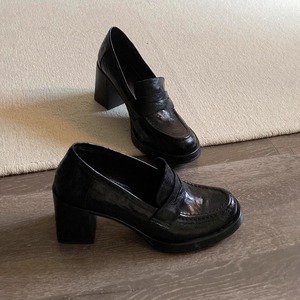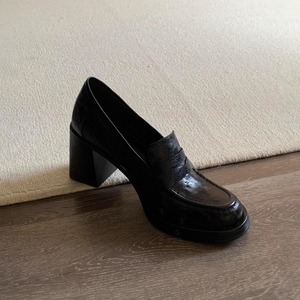 羊皮版~通勤复古高跟鞋女黑色一脚蹬真皮乐福鞋简约英伦风小皮鞋