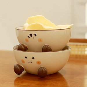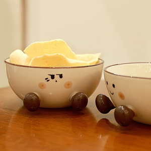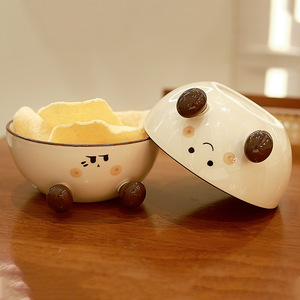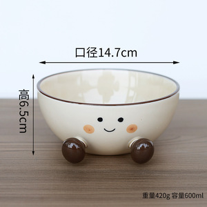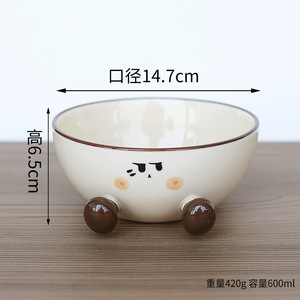 かわいい太い足の陶器製インスタントラーメンボウル、見栄えの良い大容量、家庭用学生寮インスタントラーメンボウルパーティー