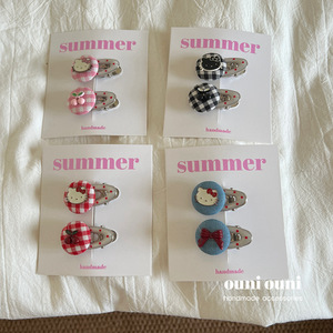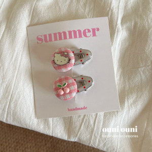 キティリボンボタンヘアピン2個、カモノハシクリップ、女の子用リボン水玉ヘアピン、切れ毛前髪クリップ
