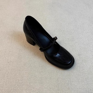 羊皮!法式玛丽珍鞋复古黑色方头一字带粗跟百搭工作通勤高跟单鞋