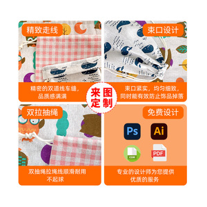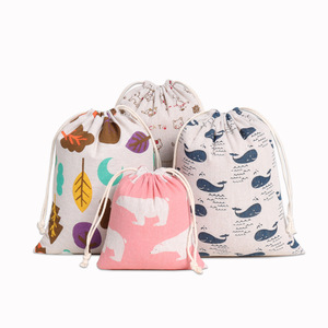 プリントコットン巾着ポケット巾着旅行下着子供のギフトおもちゃ収納袋漫画コットンリネンバッグカスタマイズ