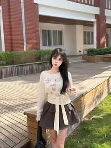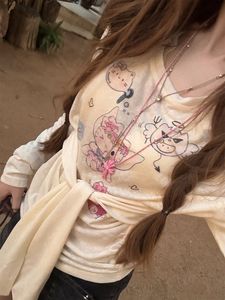 女性のためのユニークなストラップ付き長袖ブラウス夏の新しいスリム漫画プリントデザイン日焼け止め長袖Tシャツ
