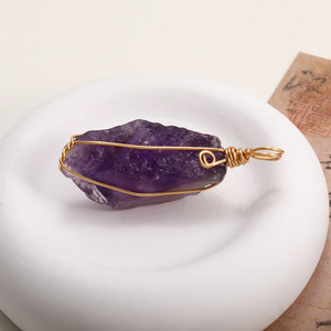 天然水晶歯花シルクペンダント手巻きアメジスト原石ネックレスジュエリー卸売工場直販モデル
