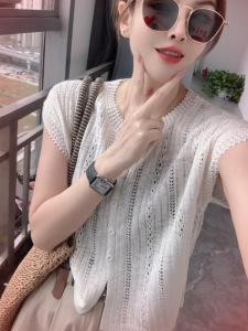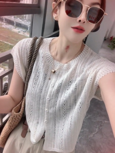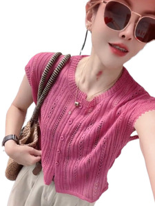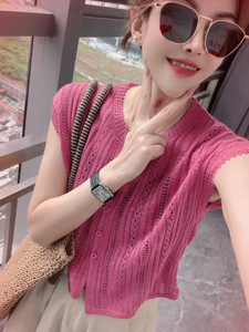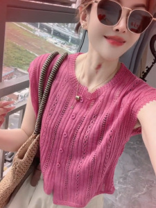 ピンク中空ニット半袖レディース2025新作夏小柄おしゃれ韓国風シックトップス