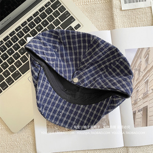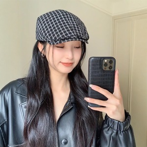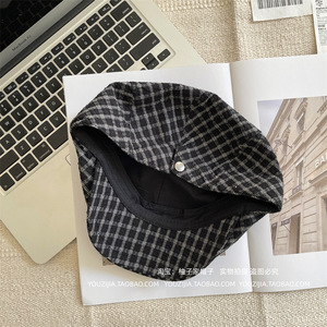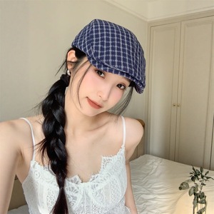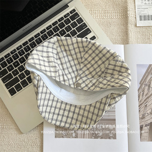 春先の新しいスタイルのチェック柄レトロスタイルフォワードハット女性用和風インスイート多用途ファッションリバースベレー帽トレンド