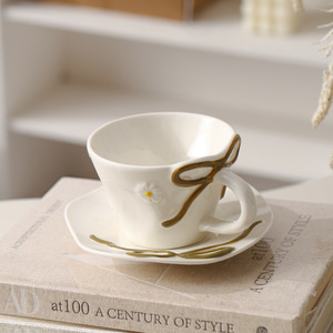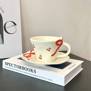 クリエイティブな手描きの立体リボンラブチェリーコーヒーカップとソーサーかわいい釉下セラミックアフタヌーンティーカップとソーサー