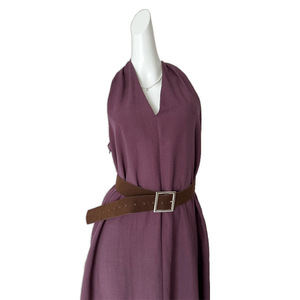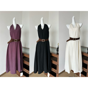 Qianyuの新しい夏の韓国スタイルのホルターネックバックレスVネックドレスフレンチスタイルウエスト痩身Aラインロングスカート