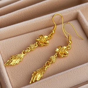 时尚新款婚庆叶子花耳环镀金饰品欧币沙金耳环首饰批发