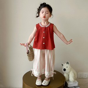 夏季新款无袖洋气2025阔腿裤套装儿童背心娃娃时髦女童两件套潮
