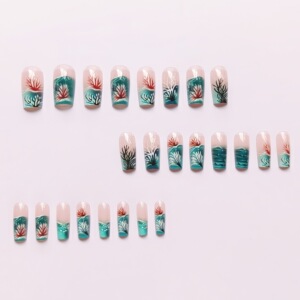 クロスボーダーホットセールスクエアフェイクネイルオーシャンコーラル取り外し可能な完成品卸売夏