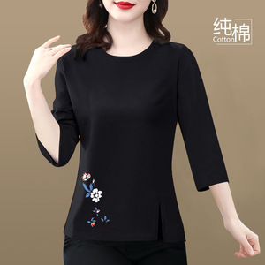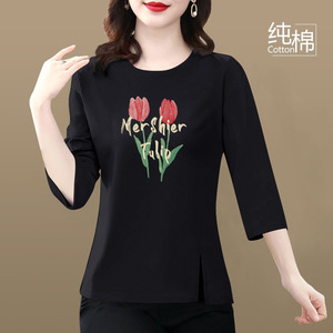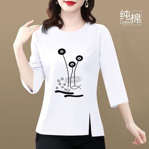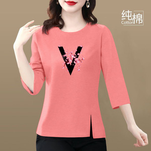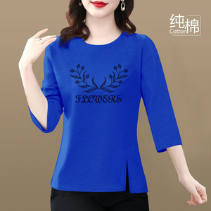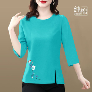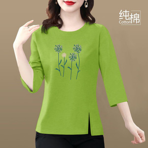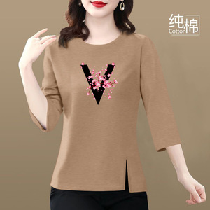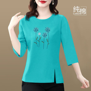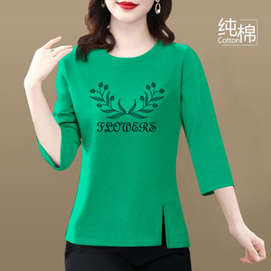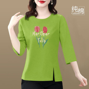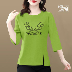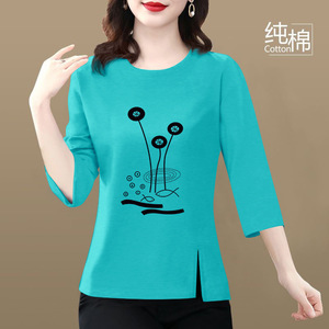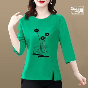 女性用七分袖シャツ、中年ママ向けコットントップス、春夏新作、ゆったり万能レディース薄手トレンドアウター