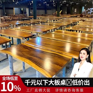 ソースファクトリー クルミ材 大型ボード ダイニングテーブル 長方形 交渉テーブル 無垢材テーブル デスク レインウッド ティーテーブル フルボードテーブル