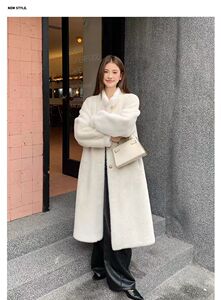 女性用の長い韓国スタイルのパフスリーブファーコート、長い毛皮のオールインワンの厚い模造ミンクベルベットの環境に優しい毛皮のコート
