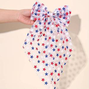 クロスボーダー新しいアメリカ独立記念日リボンスプリングクリップメッシュスターパターンヘアピンヘアアクセサリーパーティー装飾