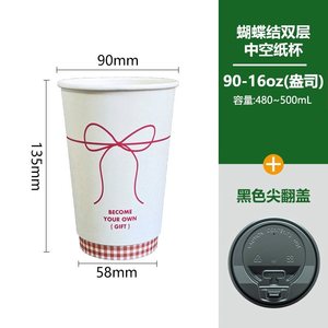 500mL蝴蝶结双层纸杯+黑尖翻盖