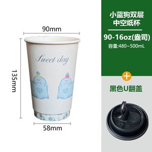500mL小蓝狗双层纸杯+黑尖翻盖