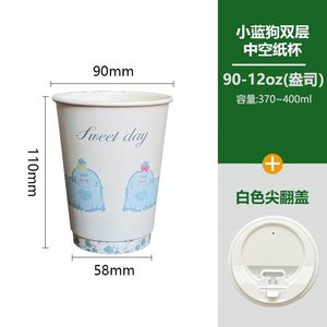 400mL小蓝狗双层纸杯+黑尖翻盖