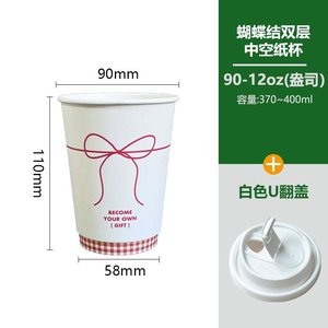 400mL蝴蝶结双层纸杯+黑U翻盖