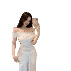 バレエガールの高級で美しいワンショルダーパッチワークメッシュレース気質Tシャツレディーストップス