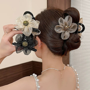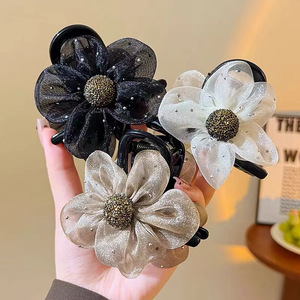 ラインストーンフラワーグリッターメッシュヘアピン新しいサメクリップ女性のハイエンドバブルヘアピンインターネットセレブホットスタイル