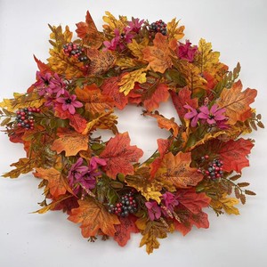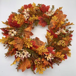 跨境万圣节丰收节秋色枫叶花环 感恩节仿真枫叶门挂装饰批发直销