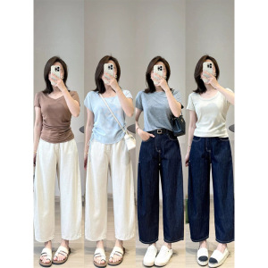 テンセルリネン9点ピーパンツレディース夏両面縫い目スタンドアップマイクロアークグラニーパンツ夏薄いソフトジーンズ