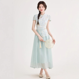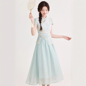 女性の 2025 夏 13 行新中国風ジャカード刺繍チャイナ ドレス偽ツーピース不規則なドレス