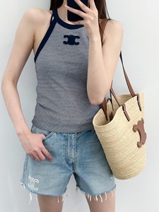 オリジナル開発!深セン南油凱旋門コントラストカラーストライプノースリーブベストホルターネックスリムフィットストライプ多用途
