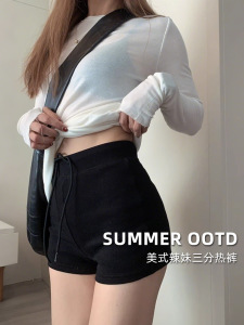 女性用スポーツショーツ、夏用薄手プラスファットプラスサイズ、太mmヒップカバースリムフィットホットパンツ、アウトドア3点カジュアルパンツ