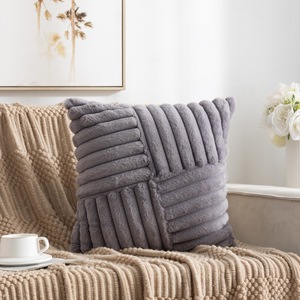Amazon ウサギのベルベットの大きなストライプの枕カバー、芯なし、ホームソファクッションカバー、ウサギの毛皮のキルティングベッドサイドクッションカバー