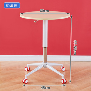 ラウンドデスクトップリフティングコーヒーテーブル クリームイエロー 60cm 【メーカー直送】