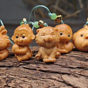 新しい蛇年干支ペンダント、天然本物のシダウッド彫刻工芸品、木彫りの装飾品、健康と楽しみ