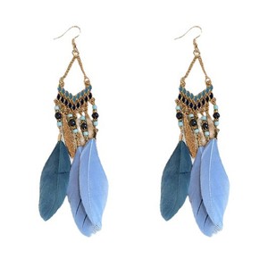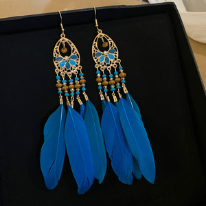 超妖精な雰囲気のブルータッセルイヤリング、海辺のリゾートスタイルの誇張イヤリング、軽い高級感と高級感のあるレトロイヤリング