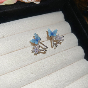 14#シルバー ニードル ジルコン フラワー レジン バタフライ スタッド ピアス