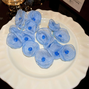 1#シルバーニードルクリスタルライスビーズシフォンフラワースタッドピアス