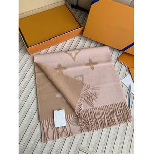 高级感双面羊绒大牌围巾女字母老花黑灰淡奶茶围脖大红保暖披肩冬