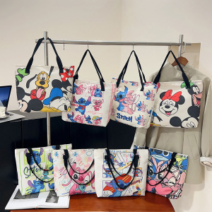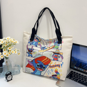 クロスボーダーキャンバスバッグママバッグプリント落書きキャンバスバッグ女性の大容量かわいい漫画リロとスティッチショルダーバッグ