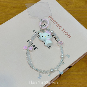 かわいい漫画 Kt 猫携帯電話ペンダントファッショナブルな甘い弓愛ビーズキーホルダーバッグぶら下げチェーン新しいスタイル