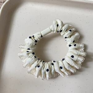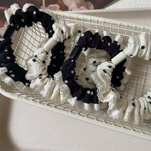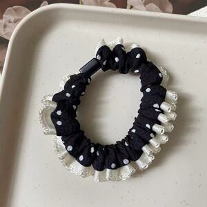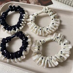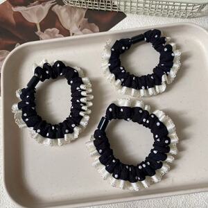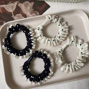 フレンチブラックとホワイトの波状光沢のあるシルクレースのヘアロープ、シンプルでエレガントなプリーツヘアゴム、ゴムバンド、女性用ハイポニーテールヘアアクセサリー