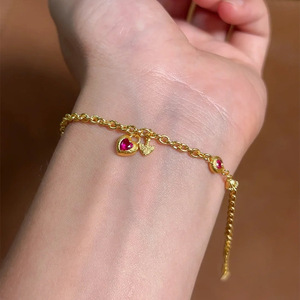 Xiaohongshuの人気の赤いハートデザイン、軽い高級感、ファッショナブル、レトロ、白い気質、ハイエンドのハンドジュエリー、ドロップシッピング